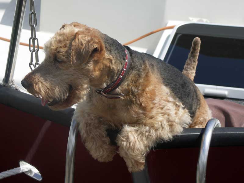 Bordhund in der Ancker Marina