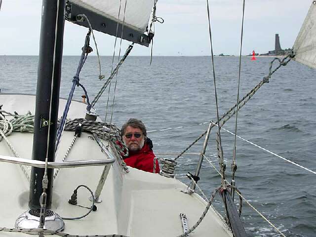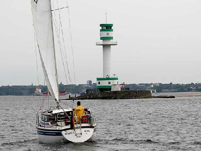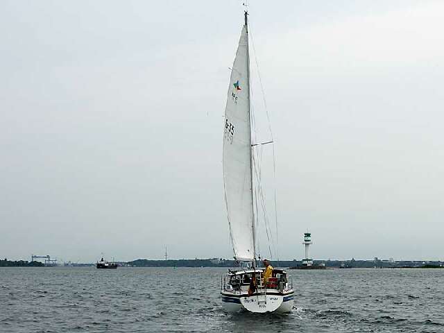 Schon in der Förde, Laboe im Hintergrund..