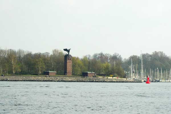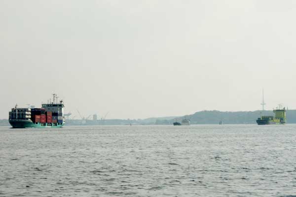 Arbeitsschiff das in Schilksee für die Arbeiten an der Mole benötigt wird.