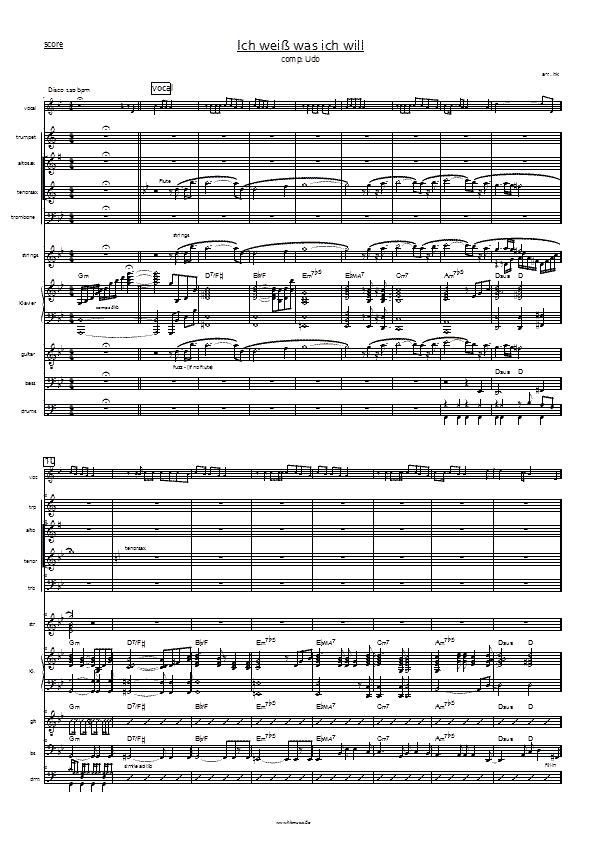 ein Combo-Arrangement für vocals, 4 Bläser und Rhythmusgruppe.